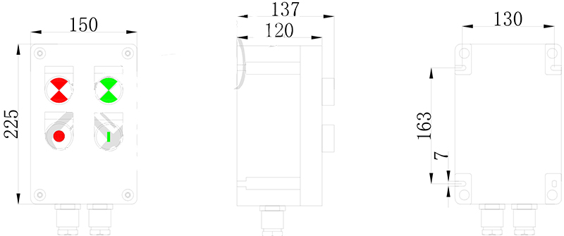 * 控制箱有增安型外殼,防爆元件(按鈕、電表、指示燈、開關(guān))及接線端子等組合;